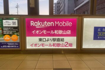 和歌山大学前駅改札前:楽天モバイル様の広告看板