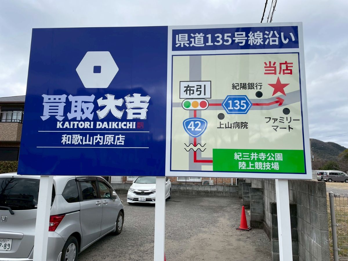 和歌山県和歌山市毛見:買取大吉様の誘導野立て看板